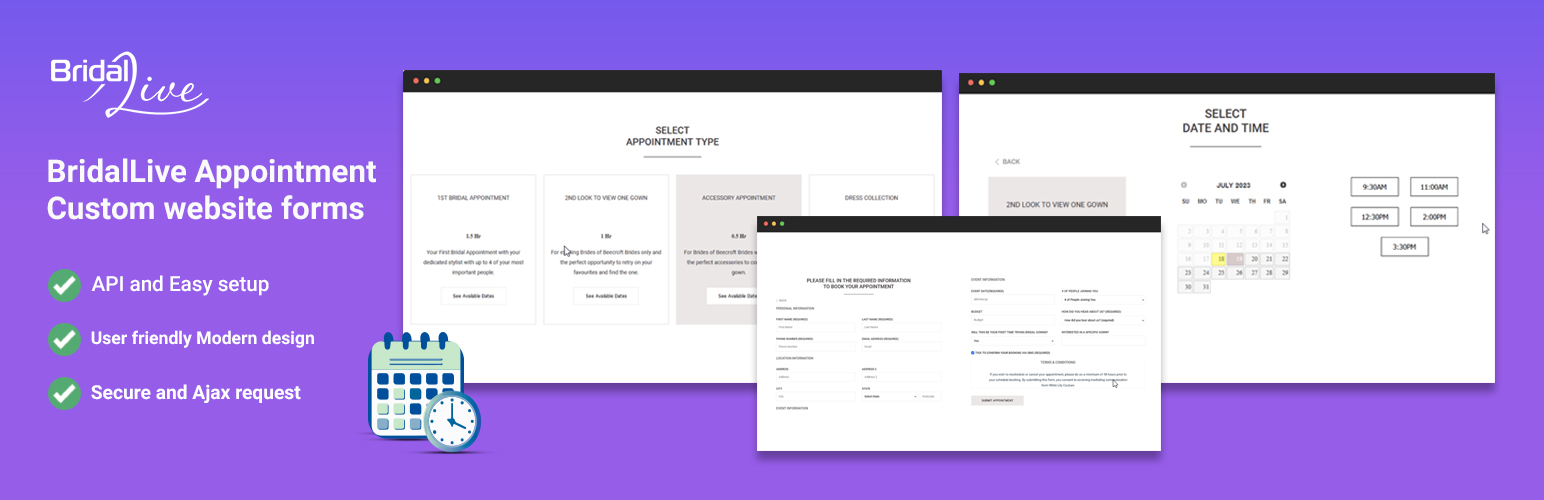 BridalLive Software’s default iframe booking system has limitations, which led us to develop a custom form system using the BridalLive API. Users must have a BridalLive Retailer Account and connect using a Retailer ID and API Key. The plugin allows for easy placement of the booking form on your website using a shortcode.
